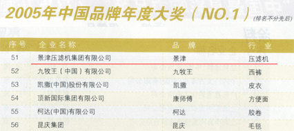 "景津"在2005年度中國(guó)經(jīng)濟(jì)舞臺(tái)的領(lǐng)軍品牌當(dāng)選為“2005中國(guó)最具影響力品牌”。