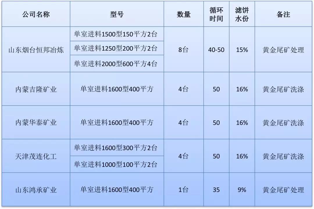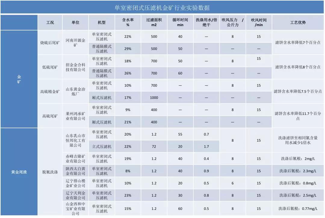 單室進(jìn)料壓濾機(jī)金礦行業(yè)實(shí)驗(yàn)數(shù)據(jù)
